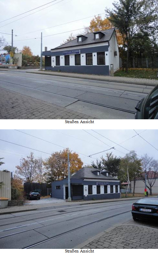 | Beschreibung (WE): | 1/1 Anteil (B-LNr 9) in 1120 Wien, Hetzendorferstraße 150 Es handelt sich um ein Geschäftslokal , welches auf einer Grundstücksfläche von 151 m² als einstöckiges Gebäude mit ausgebautem Dachgeschoß, sowie einem asphaltierten Stellplatz in Massivbauweise ausgeführt ist. Im Erdgeschoß befinden sich Vorraum, Flur, WC mit Vorraum, Dusche, 2 straßenseitige Zimmer und 3 hofseitige Zimmer, im Dachgeschoß ist eine Teeküche und ein Aufenthaltsraum. Die gesamte Nutzfläche beträgt 113,35 m². Das Gebäude wurde früher als Bordell genutzt, nunmehr ist es vermietet, dies nur zu Gastronomiezwecken, ist aber derzeit ungenutzt. Es besteht ein unbefristeter Mietvertrag mit der Sedura Holding GmbH, dieser unterliegt nicht dem MRG, Kündigungsverzicht des Vermieters bis 30.6.2015. Der monatliche Bruttohauptmietzins beträgt € 720,-, Betriebskosten € 120,- , gesamt € 840,-. Das vorhandene Zubehör ist veraltet und wurde mit € 0,- bewertet. Außerbücherliche Lasten zum Gutachtenszeitpunkt:(nach Auskunft MA 6) Grundsteuer € 25,44 Kosten: € 658,70 Weiters bestehen Abgabenrückstände an Müllabfuhrabgabe, Wasser und Abwasser gebühren in derzeit nicht bekannter Höhe. Auf das Vorzugspfandrecht gemäß § 216 Abs 1 Zif 1 und 2 EO wird hingewiesen. Das Objekt ist derzeit zwangsverwaltet von Frau Dr. Eva Riess, Rechtsanwältin in Zeltgasse 3/12, 1080 Wien. |