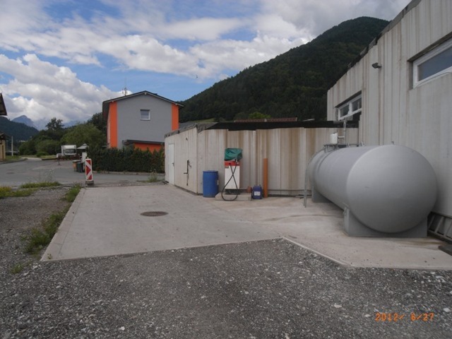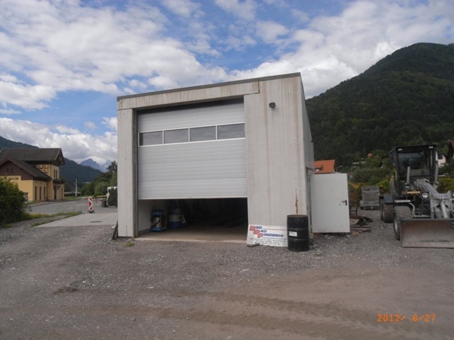 | Beschreibung (WE): | Liegenschaft in Unterthörl gegenüber dem Bahnhofsareal, ca 1,2 km vom Grenzübergang zu Italien entfernt; bebaut mit Servicebos (mit Montagegrube; 86 m2) in Massivbau aus 2009; südseitig dazu ein Lager (35 m2), daneben 10.000 l Metalltank mit Zapfsäule, Ölabscheider. |